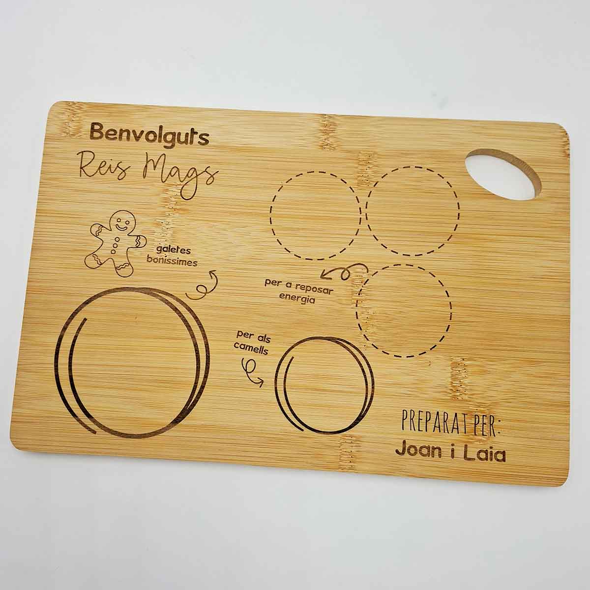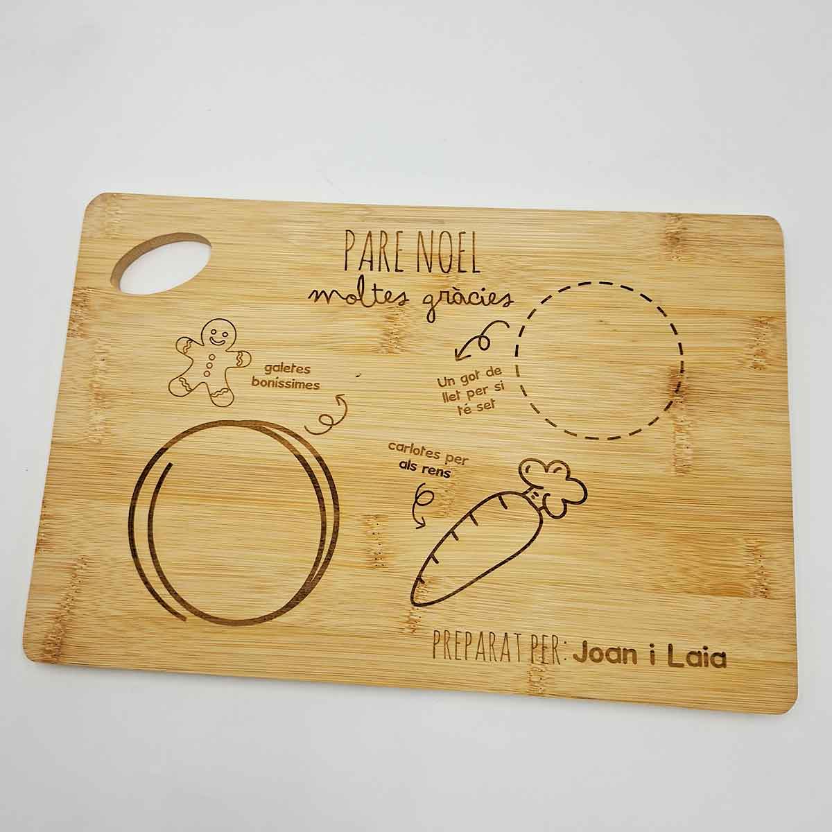 La bandeja de Papá Noel o Reyes Magos personalizada es perfecta para mantener viva la magia de estas fechas tan especiales. Fabricada en bambú pulido natural, es ideal para dejar las galletas, la leche y el agua que esperan Papá Noel o los Reyes Magos en su visita nocturna.